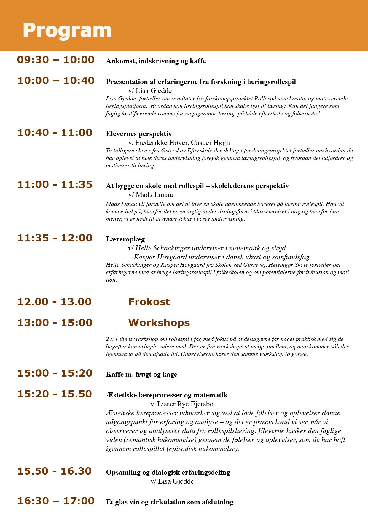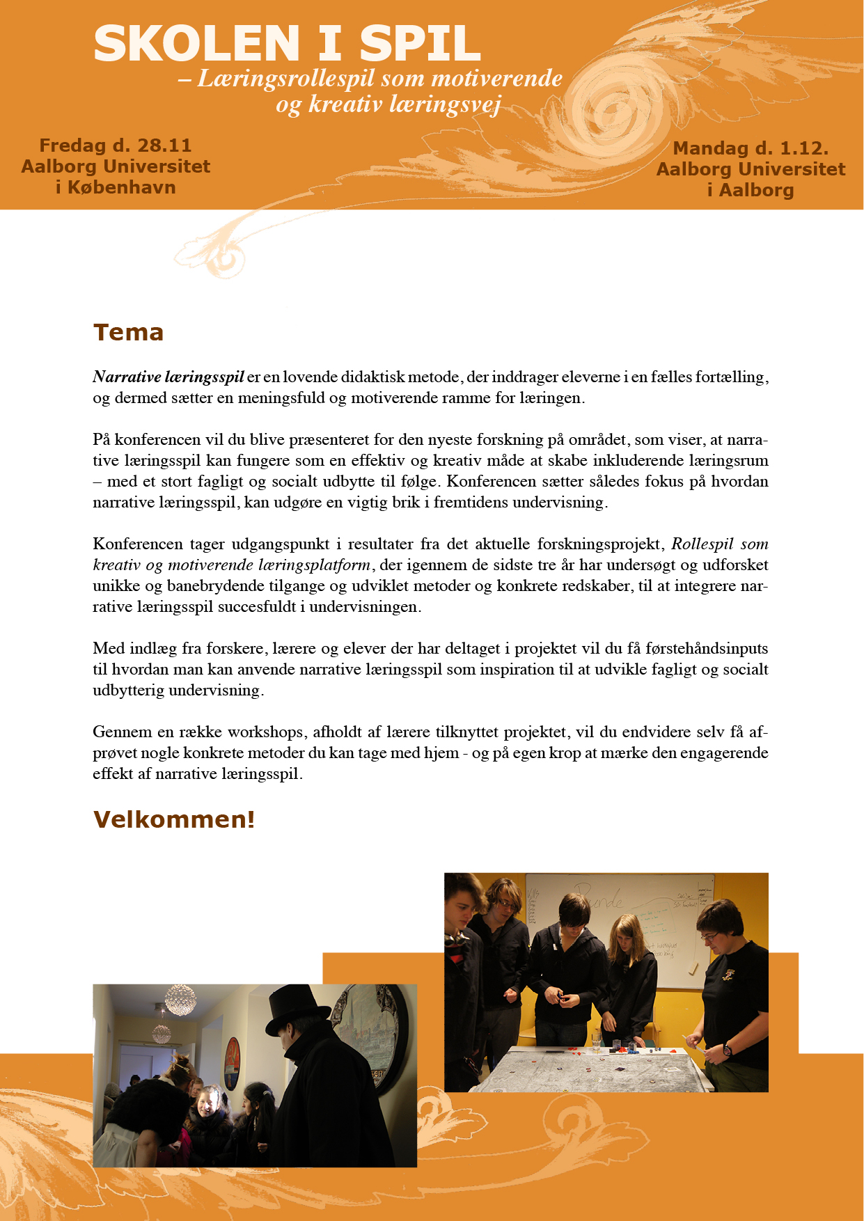 Konferencen tager udgangspunkt i erfaringer og resultater fra forskningsprojektet Rollespil som kreativ og motiverende læringsplatform.